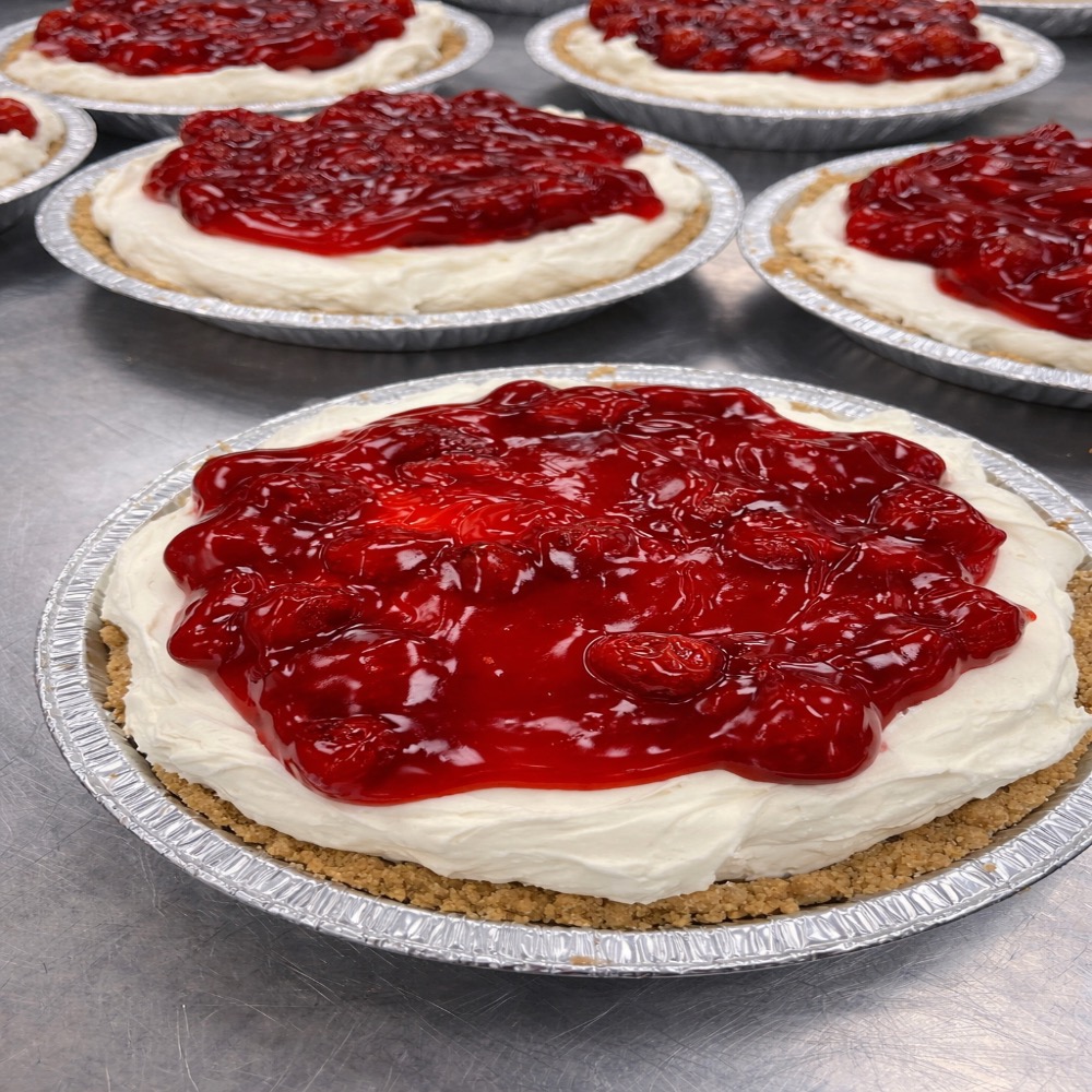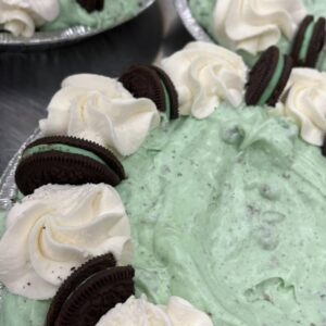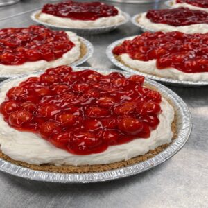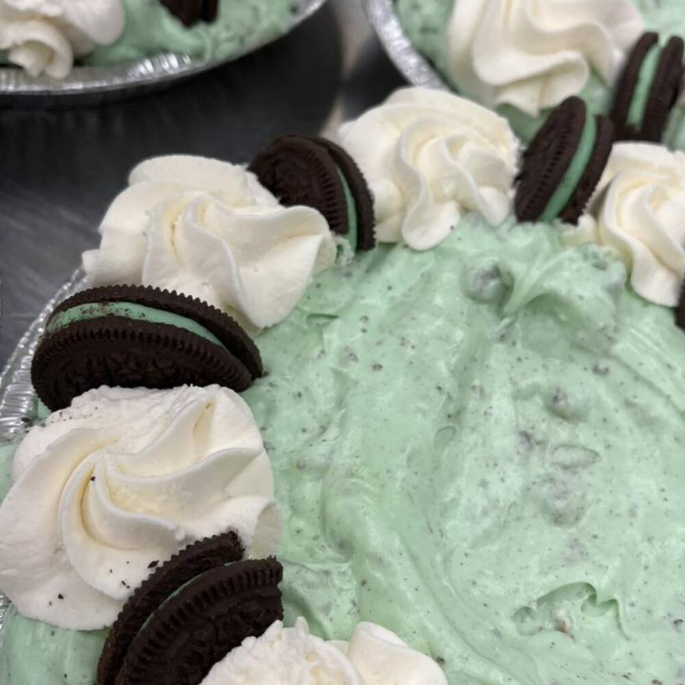 We also offer other sweet treats like chocolate chip cookie cakes, chocolate-covered pretzels, seasonal pies, specialty cookies, and baked goods.